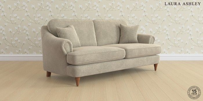 7.0.3 Buy Ambersham by Laura Ashley 3 Seater Sofa Lundar Chenille Truffle Natural Low Turned - Teak from the Next UK online shop Click here to use our accessible website
