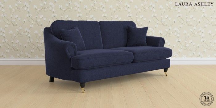7.0.3 Buy Ambersham by Laura Ashley 3 Seater Sofa Nantmor Midnight Navy Low Brass Castor - Black from the Next UK online shop Click here to use our accessible website