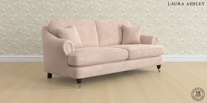 7.0.3 Buy Ambersham by Laura Ashley 3 Seater Sofa Orla Chalk Pink Low Chrome Castor - Black from the Next UK online shop Click here to use our accessible website