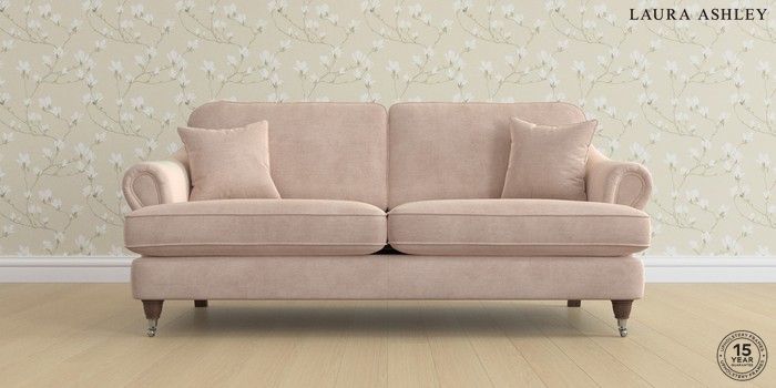 7.0.3 Buy Ambersham by Laura Ashley 3 Seater Sofa Orla Chalk Pink Low Chrome Castor - Chestnut from the Next UK online shop Click here to use our accessible website