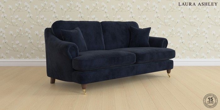 7.0.3 Buy Ambersham by Laura Ashley 3 Seater Sofa Orla Midnight Navy Low Brass Castor - Chestnut from the Next UK online shop Click here to use our accessible website