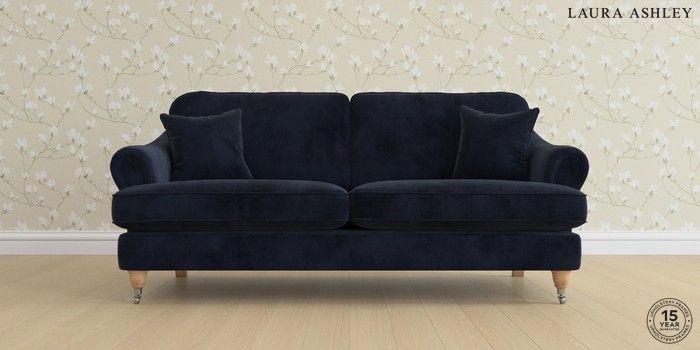 7.0.3 Buy Ambersham by Laura Ashley 3 Seater Sofa Orla Midnight Navy Low Chrome Castor - Light Oak from the Next UK online shop Click here to use our accessible website