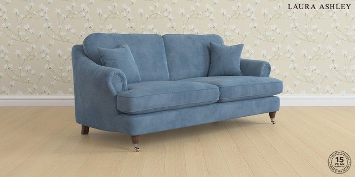 7.0.3 Buy Ambersham by Laura Ashley 3 Seater Sofa Orla Seaspray Blue Low Chrome Castor - Chestnut from the Next UK online shop Click here to use our accessible website