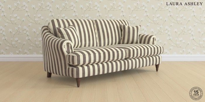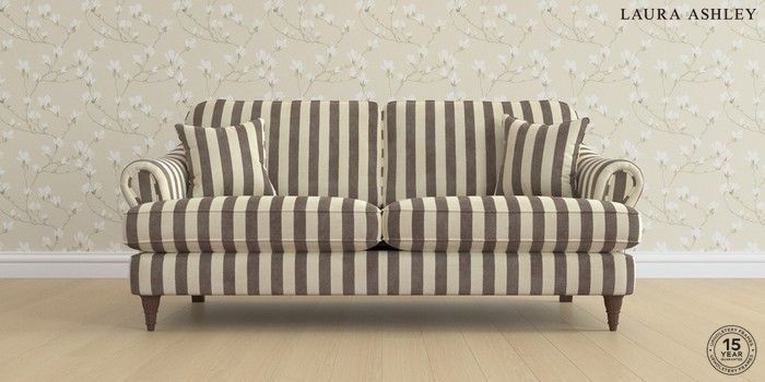 7.0.3 Buy Ambersham by Laura Ashley 3 Seater Sofa Orla Stripe Dark Truffle Natural Low Turned - Chestnut from the Next UK online shop Click here to use our accessible website