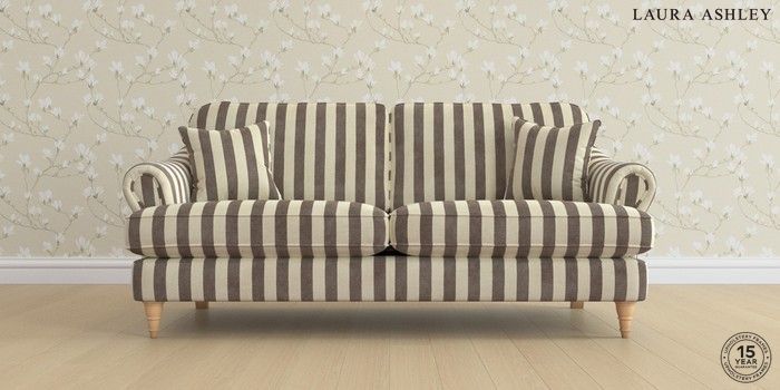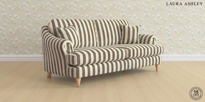 7.0.3 Buy Ambersham by Laura Ashley 3 Seater Sofa Orla Stripe Dark Truffle Natural Low Turned - Light Oak from the Next UK online shop Click here to use our accessible website