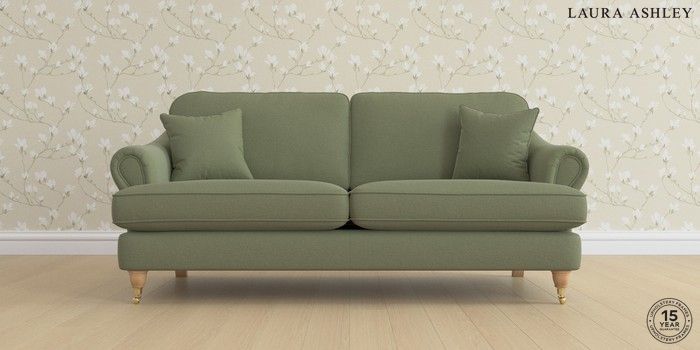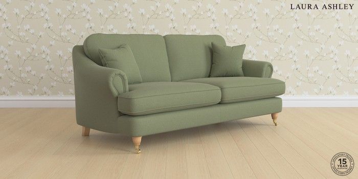 7.0.3 Buy Ambersham by Laura Ashley 3 Seater Sofa Peyton Hedgerow Green Low Brass Castor - Light Oak from the Next UK online shop Click here to use our accessible website