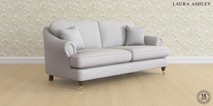 7.0.3 Buy Ambersham by Laura Ashley 3 Seater Sofa Wooton Pale Steel Grey Low Brass Castor - Chestnut from the Next UK online shop Click here to use our accessible website