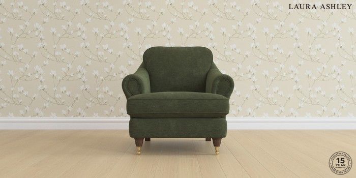 7.0.3 Buy Ambersham by Laura Ashley Armchair Alwyn Velvet Ivy Green Low Brass Castor - Chestnut from the Next UK online shop Click here to use our accessible website