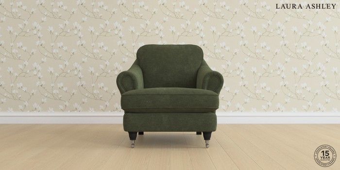 7.0.3 Buy Ambersham by Laura Ashley Armchair Alwyn Velvet Ivy Green Low Chrome Castor - Black from the Next UK online shop Click here to use our accessible website