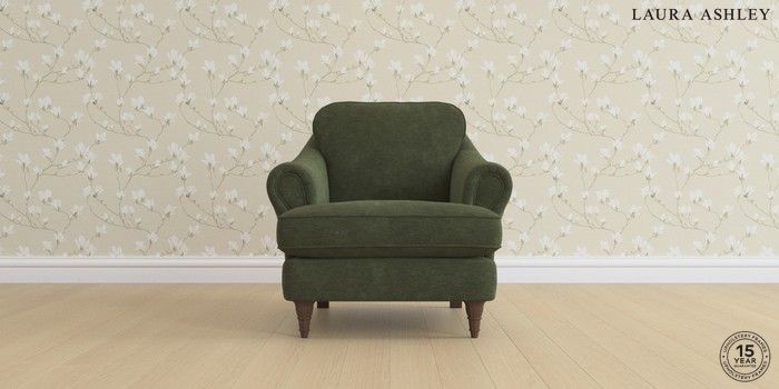 7.0.3 Buy Ambersham by Laura Ashley Armchair Alwyn Velvet Ivy Green Low Turned - Chestnut from the Next UK online shop Click here to use our accessible website