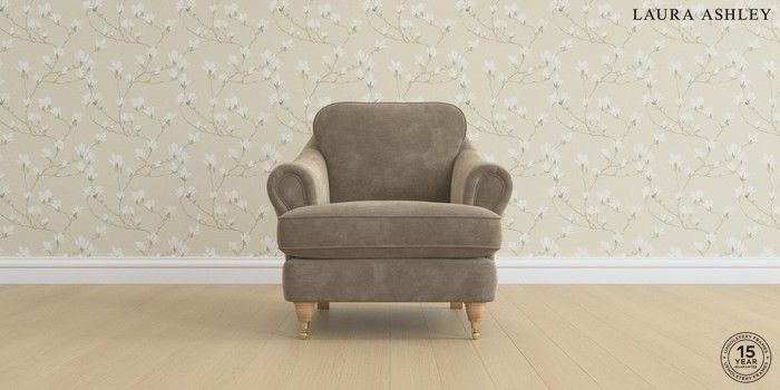 7.0.3 Buy Ambersham by Laura Ashley Armchair Alwyn Velvet Truffle Natural Low Brass Castor - Light Oak from the Next UK online shop Click here to use our accessible website