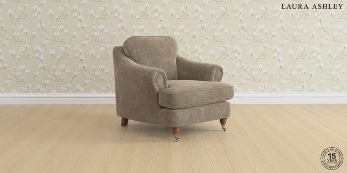 7.0.3 Buy Ambersham by Laura Ashley Armchair Alwyn Velvet Truffle Natural Low Chrome Castor - Teak from the Next UK online shop Click here to use our accessible website