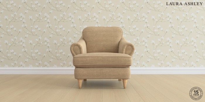 7.0.3 Buy Ambersham by Laura Ashley Armchair Edwin Chenille Gold Natural Low Turned - Light Oak from the Next UK online shop Click here to use our accessible website