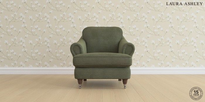 7.0.3 Buy Ambersham by Laura Ashley Armchair Edwin Chenille Hedgerow Green Low Chrome Castor - Chestnut from the Next UK online shop Click here to use our accessible website