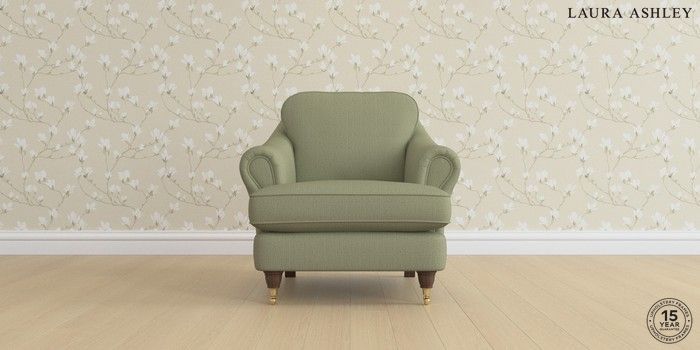 7.0.3 Buy Ambersham by Laura Ashley Armchair Edwin Herringbone Hedgerow Green Low Brass Castor - Chestnut from the Next UK online shop Click here to use our accessible website