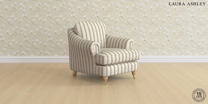 7.0.3 Buy Ambersham by Laura Ashley Armchair Kinsham Stripe Seaspray Blue Low Brass Castor - Light Oak from the Next UK online shop Click here to use our accessible website