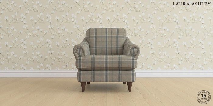 7.0.3 Buy Ambersham by Laura Ashley Armchair Longstowe Check French Grey Low Turned - Chestnut from the Next UK online shop Click here to use our accessible website