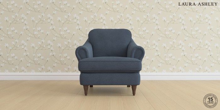 7.0.3 Buy Ambersham by Laura Ashley Armchair Lundar Chenille Navy Blue Low Turned - Chestnut from the Next UK online shop Click here to use our accessible website