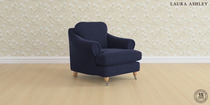7.0.3 Buy Ambersham by Laura Ashley Armchair Nantmor Midnight Navy Low Chrome Castor - Light Oak from the Next UK online shop Click here to use our accessible website