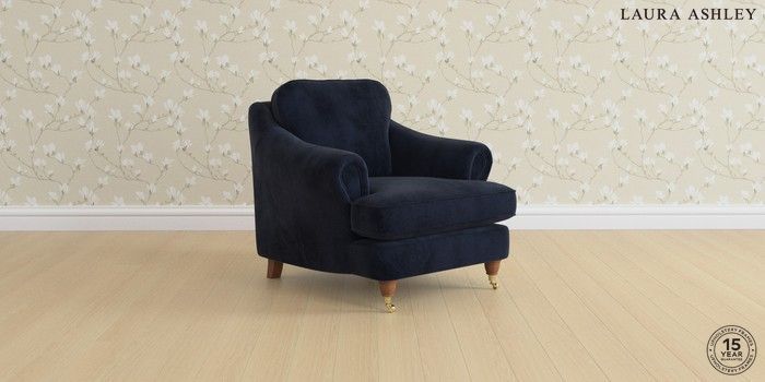 7.0.3 Buy Ambersham by Laura Ashley Armchair Orla Midnight Navy Low Brass Castor - Teak from the Next UK online shop Click here to use our accessible website