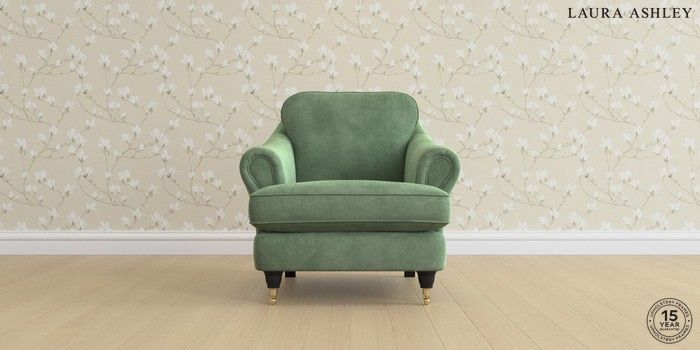 7.0.3 Buy Ambersham by Laura Ashley Armchair Orla Pale Hedgerow Green Low Brass Castor - Black from the Next UK online shop Click here to use our accessible website