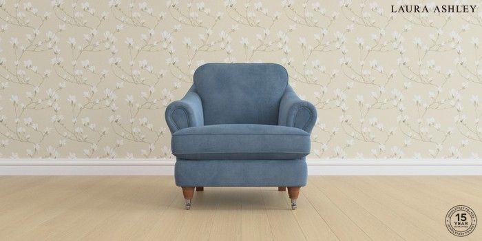 7.0.3 Buy Ambersham by Laura Ashley Armchair Orla Seaspray Blue Low Chrome Castor - Teak from the Next UK online shop Click here to use our accessible website