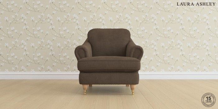 7.0.3 Buy Ambersham by Laura Ashley Armchair Sinclair Cord Chocolate Brown Low Brass Castor - Light Oak from the Next UK online shop Click here to use our accessible website