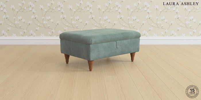 7.0.3 Buy Ambersham by Laura Ashley Storage Footstool Ailsworth Fern Green Low Turned - Teak from the Next UK online shop Click here to use our accessible website