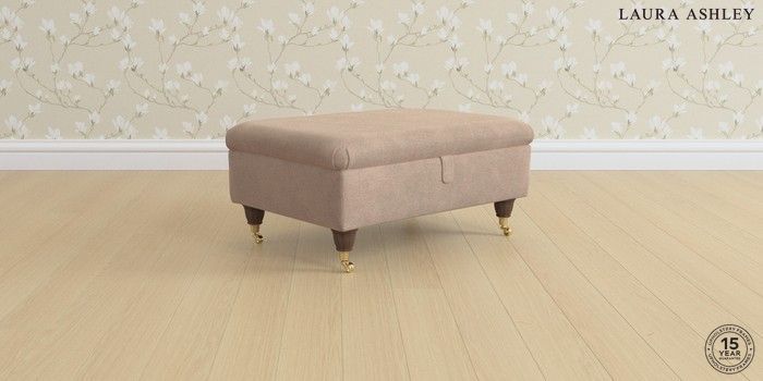 7.0.3 Buy Ambersham by Laura Ashley Storage Footstool Ailsworth Mink Natural Low Brass Castor - Chestnut from the Next UK online shop Click here to use our accessible website