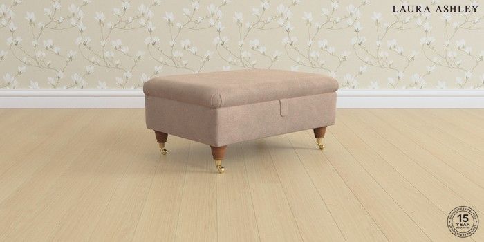 7.0.3 Buy Ambersham by Laura Ashley Storage Footstool Ailsworth Mink Natural Low Brass Castor - Teak from the Next UK online shop Click here to use our accessible website