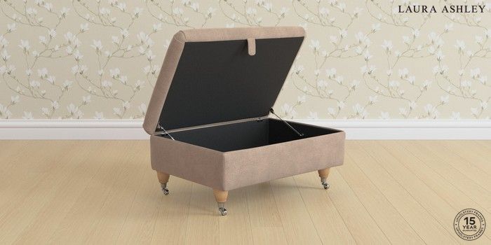 7.3.8 Buy Ambersham by Laura Ashley Storage Footstool Ailsworth Mink Natural Low Chrome Castor - Light Oak from the Next UK online shop