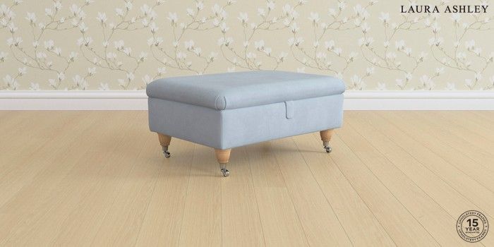 7.0.3 Buy Ambersham by Laura Ashley Storage Footstool Ailsworth Newport Blue Low Chrome Castor - Light Oak from the Next UK online shop Click here to use our accessible website