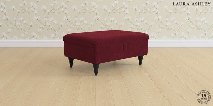 7.0.3 Buy Ambersham by Laura Ashley Storage Footstool Alwyn Velvet Burgundy Red Low Turned - Black from the Next UK online shop Click here to use our accessible website