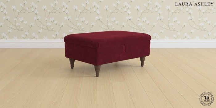 7.0.3 Buy Ambersham by Laura Ashley Storage Footstool Alwyn Velvet Burgundy Red Low Turned - Chestnut from the Next UK online shop Click here to use our accessible website