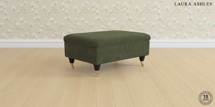 7.0.3 Buy Ambersham by Laura Ashley Storage Footstool Alwyn Velvet Ivy Green Low Brass Castor - Black from the Next UK online shop Click here to use our accessible website