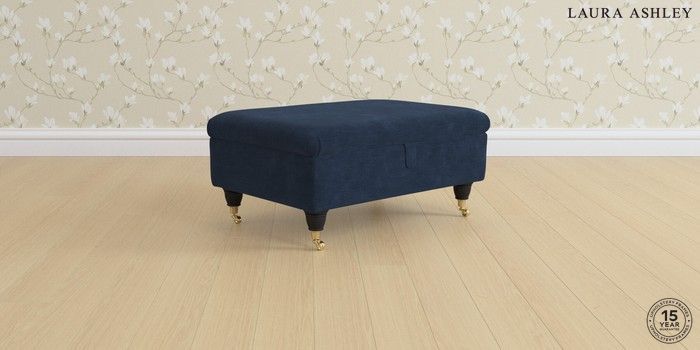 7.0.3 Buy Ambersham by Laura Ashley Storage Footstool Alwyn Velvet Midnight Navy Low Brass Castor - Black from the Next UK online shop Click here to use our accessible website