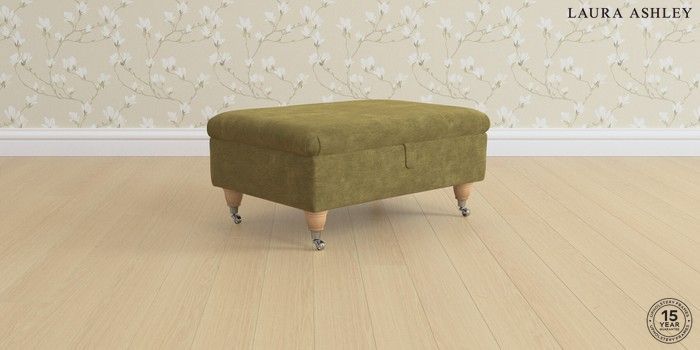7.0.3 Buy Ambersham by Laura Ashley Storage Footstool Alwyn Velvet Olive Green Low Chrome Castor - Light Oak from the Next UK online shop Click here to use our accessible website