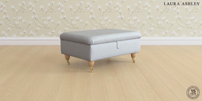 7.0.3 Buy Ambersham by Laura Ashley Storage Footstool Anneliese Seaspray Blue Low Brass Castor - Light Oak from the Next UK online shop Click here to use our accessible website