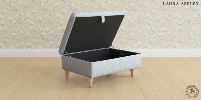 7.3.8 Buy Ambersham by Laura Ashley Storage Footstool Anneliese Seaspray Blue Low Turned - Light Oak from the Next UK online shop