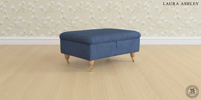 7.0.3 Buy Ambersham by Laura Ashley Storage Footstool Bainton Midnight Navy Low Brass Castor - Light Oak from the Next UK online shop Click here to use our accessible website