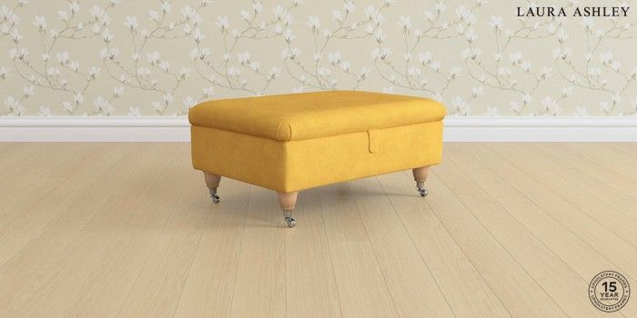 7.0.3 Buy Ambersham by Laura Ashley Storage Footstool Bainton Ochre Yellow Low Chrome Castor - Light Oak from the Next UK online shop Click here to use our accessible website