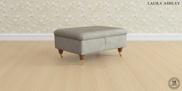 7.0.3 Buy Ambersham by Laura Ashley Storage Footstool Bainton Pale Steel Grey Low Brass Castor - Teak from the Next UK online shop Click here to use our accessible website