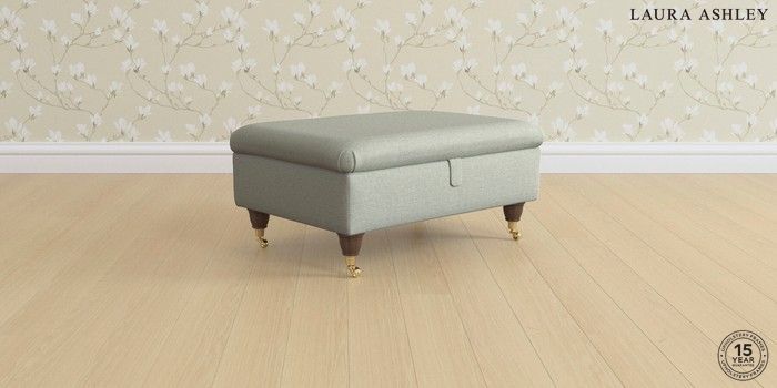 7.0.3 Buy Ambersham by Laura Ashley Storage Footstool Bainton Sage Green Low Brass Castor - Chestnut from the Next UK online shop Click here to use our accessible website
