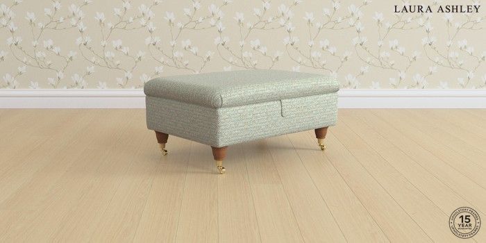 7.0.3 Buy Ambersham by Laura Ashley Storage Footstool Borwick Newport Blue Low Brass Castor - Teak from the Next UK online shop Click here to use our accessible website
