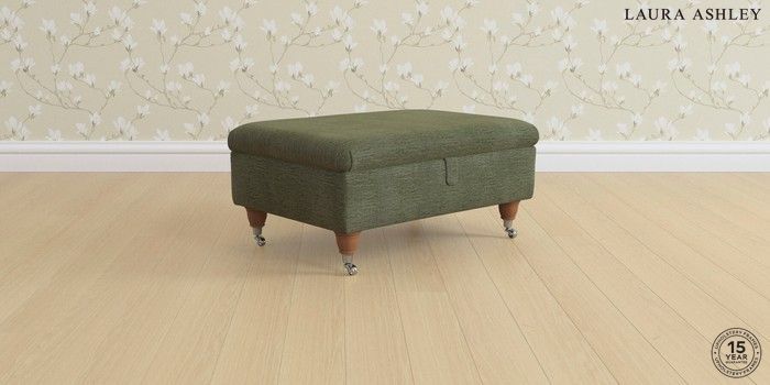 7.0.3 Buy Ambersham by Laura Ashley Storage Footstool Edwin Chenille Hedgerow Green Low Chrome Castor - Teak from the Next UK online shop Click here to use our accessible website