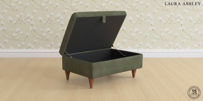 7.3.8 Buy Ambersham by Laura Ashley Storage Footstool Edwin Chenille Hedgerow Green Low Turned - Teak from the Next UK online shop