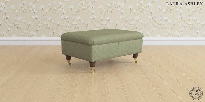 7.0.3 Buy Ambersham by Laura Ashley Storage Footstool Edwin Herringbone Hedgerow Green Low Brass Castor - Chestnut from the Next UK online shop Click here to use our accessible website