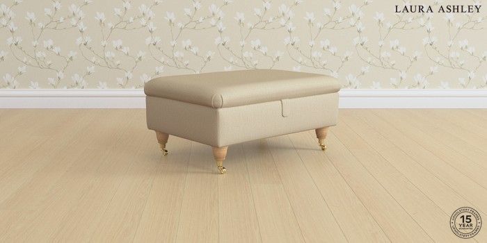 7.0.3 Buy Ambersham by Laura Ashley Storage Footstool Edwin Herringbone Natural Low Brass Castor - Light Oak from the Next UK online shop Click here to use our accessible website