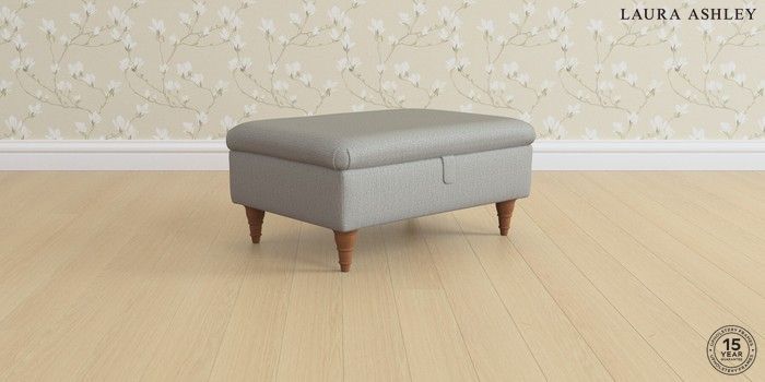 7.0.3 Buy Ambersham by Laura Ashley Storage Footstool Edwin Herringbone Pale Steel Grey Low Turned - Teak from the Next UK online shop Click here to use our accessible website