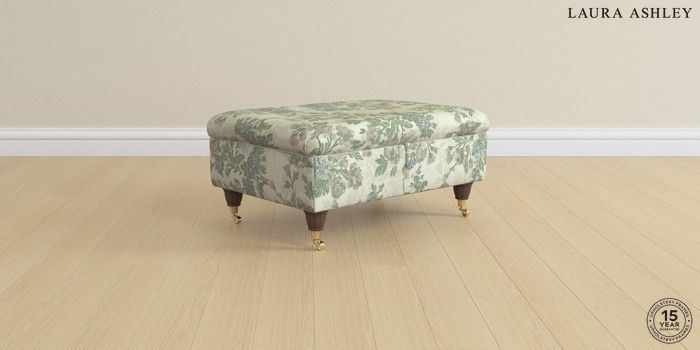 7.0.3 Buy Ambersham by Laura Ashley Storage Footstool Ellerby Seaspray Blue Low Brass Castor - Chestnut from the Next UK online shop Click here to use our accessible website